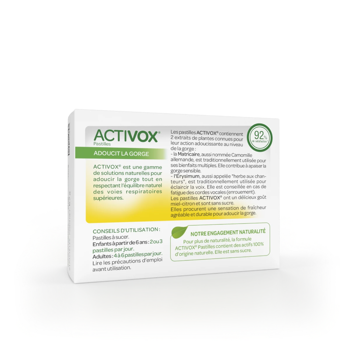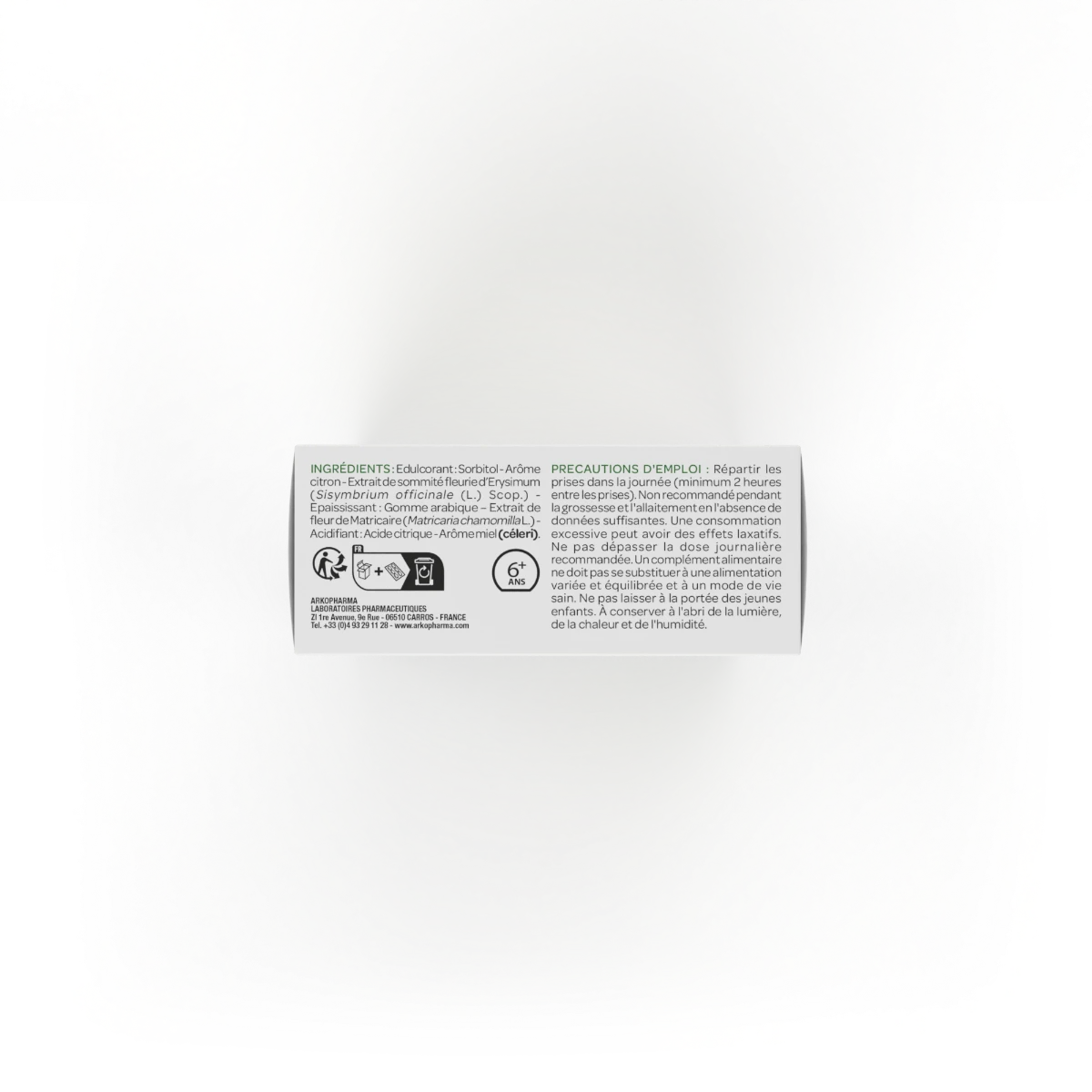 Le complément alimentaire Activox® Miel Citron d’Arkopharma se présente sous la forme de pastilles à l’erysimum et à la matricaire. L’erysimum est une plante connue depuis des millénaires pour aider à lutter contre les affections telles que les pharyngites ou les laryngites. Quant à la matricaire, une forme de camomille, elle possède des propriétés adoucissantes et antivirales qui en font une alliée précieuse pour soulager la gorge des désagréments dus au froid ou à certaines affections hivernales. Ces pastilles sont aromatisées au miel et au citron. Elles rafraîchissent durablement l’haleine et adoucissent la gorge. De ce fait, elles contribuent à soulager les enrouements dus à la fatigue des cordes vocales ou à une inflammation causée par une affection.