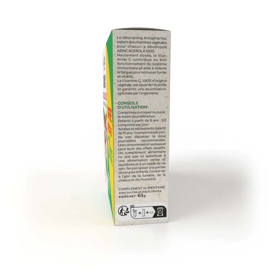 Arkopharma a spécialement élaboré AZINC® Acérola 1000 : une formule à base de vitamine C 100% d’origine naturelle et sans aucun autre ingrédient chimique, dont l’assimilation par l’organisme est optimisée.