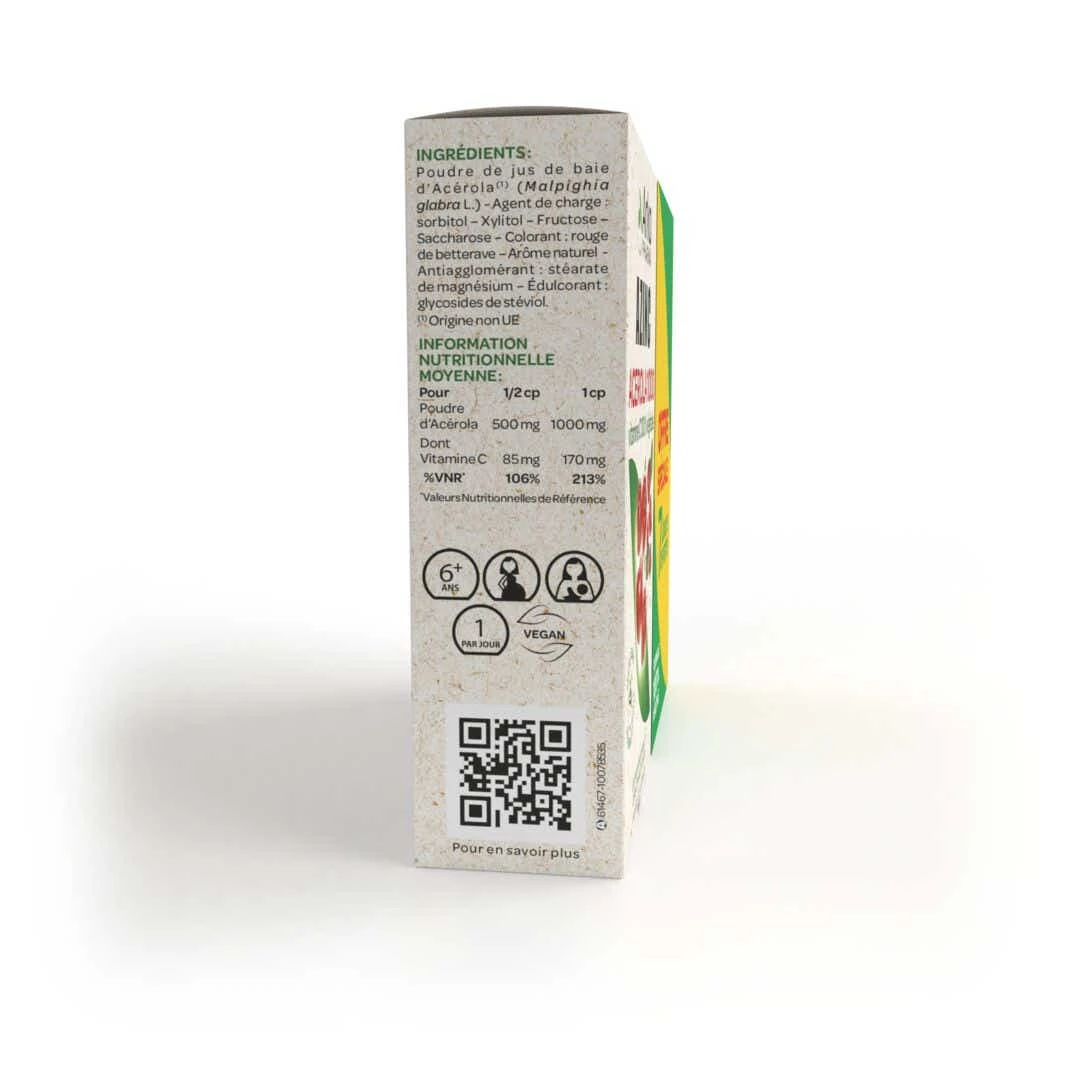 La vitamine C est issue de baies d’acérola originaires d’Amérique du Sud et d’Amérique Centrale. Cette origine naturelle lui permet d’être mieux assimilée par l’organisme.