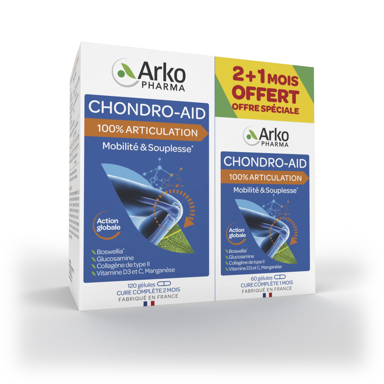 Chondro-Aid® 100% Articulation est recommandé pour une prise en charge totale de vos articulations. Sa formule complète contient un extrait de Boswellia, hautement concentré, pour maintenir votre confort articulaire et une mobilité normale de vos articulations. Grâce à sa formule complète, Chondro-Aid® 100% Articulation prend en charge l’ensemble de l’articulation et agit à plusieurs niveaux :