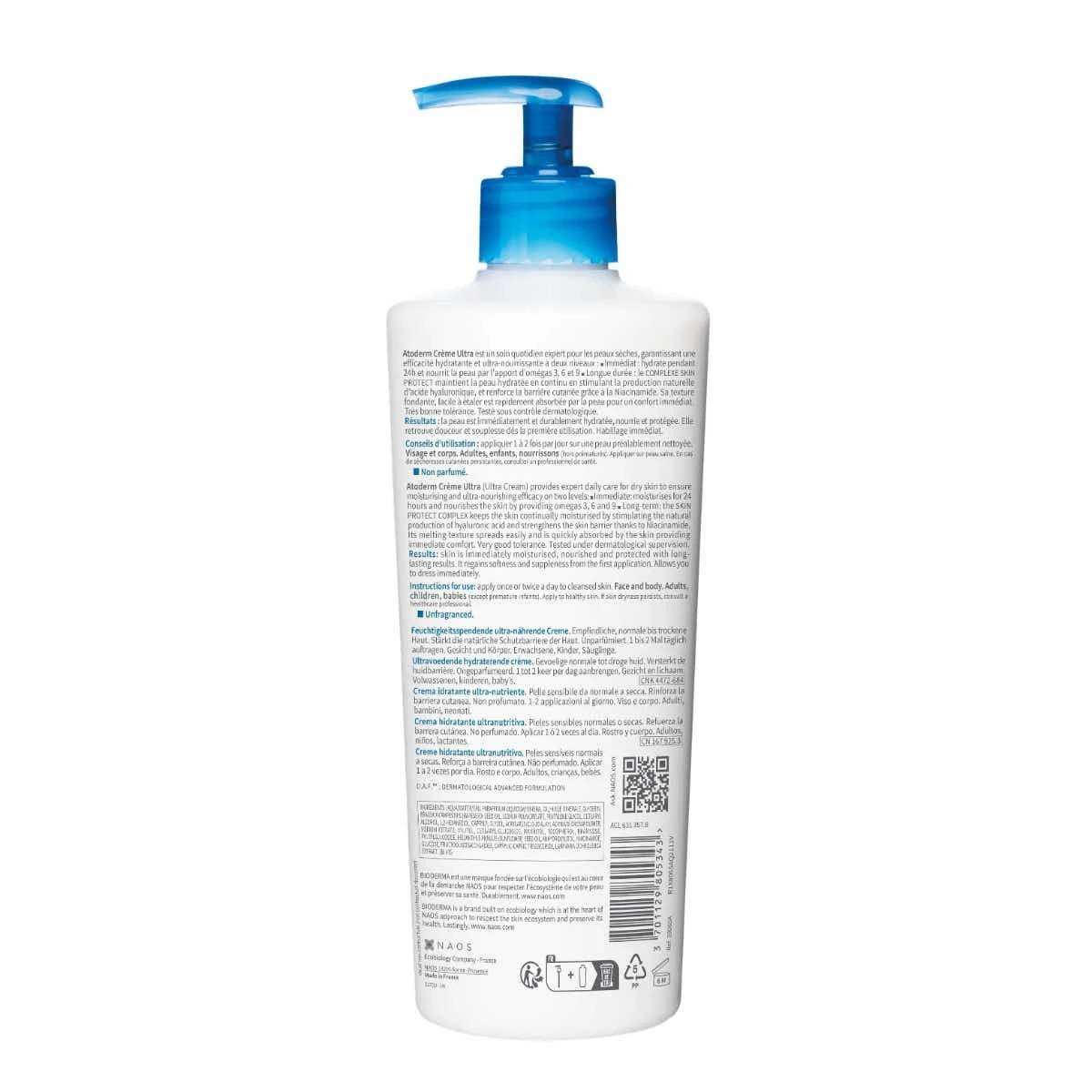 La crème Atoderm est riche en agents humectants et anti-déshydratants qui contribuent à fixer l’eau dans les couches supérieures de la peau. Ses ingrédients actifs surgraissants et restructurants favorisent un meilleur confort. Sa texture onctueuse offre une absorption rapide. Son effet hydratant dure 24 heures minimum. Non comédogène, la crème Atoderm est très bien tolérée par les peaux sensibles. Son flacon pompe et son format 500 ml facilitent un usage quotidien.