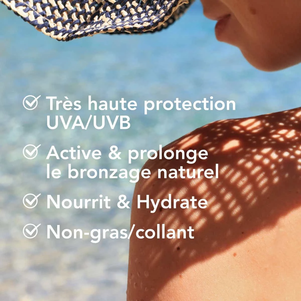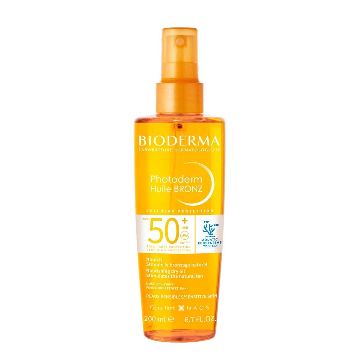 L’Huile Solaire Bronz Sèche SPF50 protège et sublime le bronzage des peaux sensibles.
