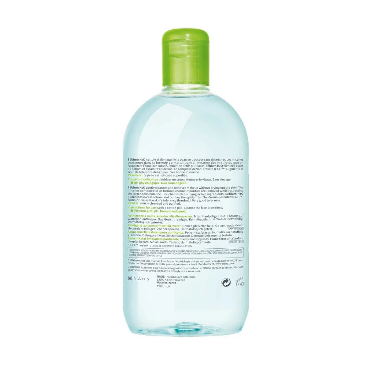 La Solution Micellaire Nettoyante et Purifiante Sébium H2O de BIODERMA est un soin adapté aux peaux mixtes à grasses des adolescents et des adultes. L’excès de sébum se matérialise par des brillances sur certaines zones (menton, nez et front) ou sur l’ensemble du visage. Cet excès de sébum obstrue les pores de la peau, ce qui empêche cette dernière de respirer et favorise le développement de boutons et de points noirs. Pour lutter contre ce phénomène, le soin de BIODERMA contient des micelles. Celles-ci emprisonnent les impuretés et l’excès de sébum présents sur l’épiderme, afin de faciliter leur élimination. La solution micellaire Sébium H20 nettoie ainsi la peau, tout en douceur. Ce soin contient également du gluconate de zinc et du sulfate de cuivre. Ces actifs matifiants et purifiants absorbent l’excès de sébum et aident à assainir l’épiderme. Hypoallergénique et sans paraben, cette solution micellaire non comédogène nettoie la peau sans l’agresser.
