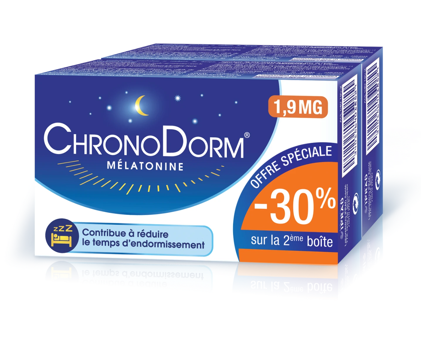 ChronoDorm Mélatonine des Laboratoires Iprad est un complément alimentaire conçu pour faciliter l’endormissement. Conseillé aux personnes souffrant de troubles du sommeil et aux voyageurs pour atténuer les effets du décalage horaire, il ne crée pas d’accoutumance ni de dépendance. Ces comprimés sublinguaux sont à faire fondre sous la langue permettant une prise facile et une absorption rapide de la mélatonine par l’organisme.