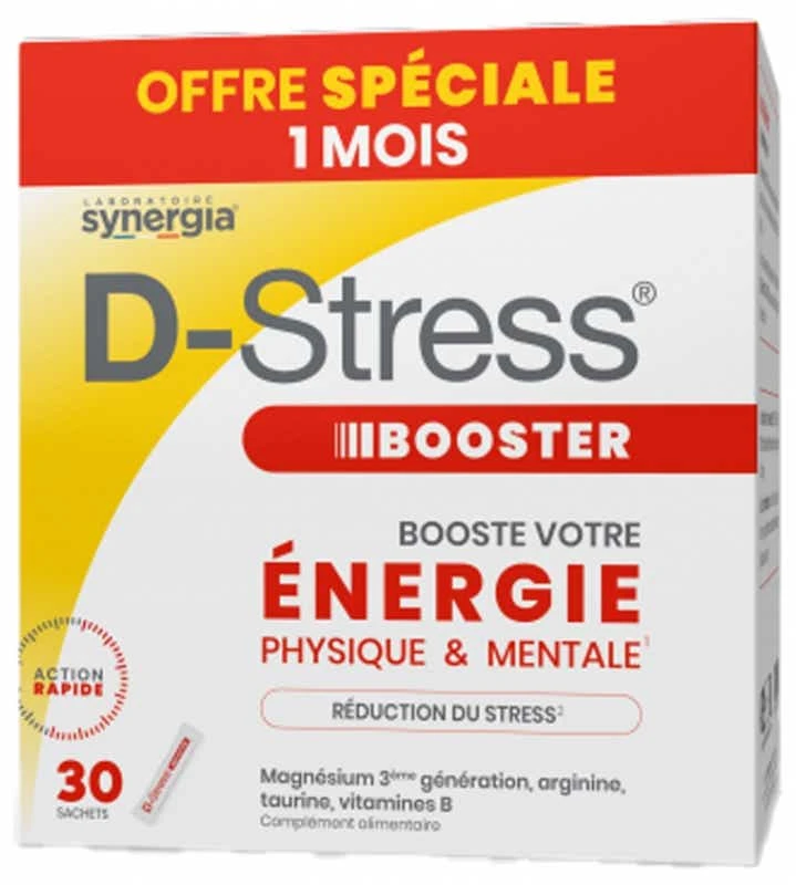 Les sachets D-Stress Booster de Synergia, aident à retrouver de l’énergie aussi bien physique que mentale.
