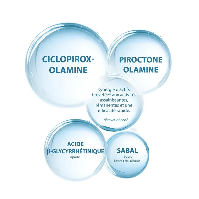 - Les actifs : Ciclopiroxolamine, Piroctone Olamine