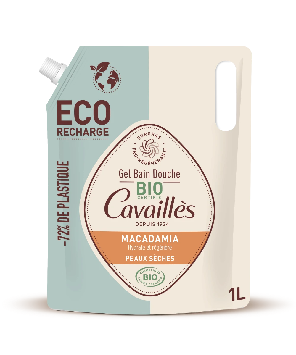 ECO RECHARGE – Gel Bain Douche Surgras Végétal Huile De Macadamia Bio – Peaux Sèches, 1L