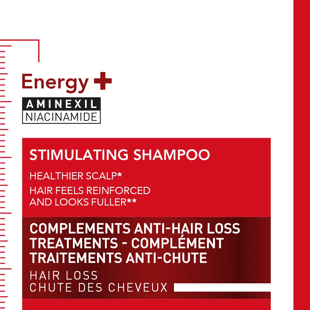Le shampoing Anti Chute Énergisant Dercos Technique de Vichy est à la fois un soin nettoyant et un traitement anti-chute de cheveux. Il contient l’Aminexil, une molécule brevetée issue de 10 années de recherche. Cet ingrédient se révèle efficace pour prolonger la durée de vie du cheveu en empêchant la rigidification de la gaine de collagène qui entoure la racine du cheveu. Il permet ainsi de préserver la souplesse et la perméabilité des tissus situés autour de la racine pour mieux ancrer les cheveux dans le cuir chevelu.