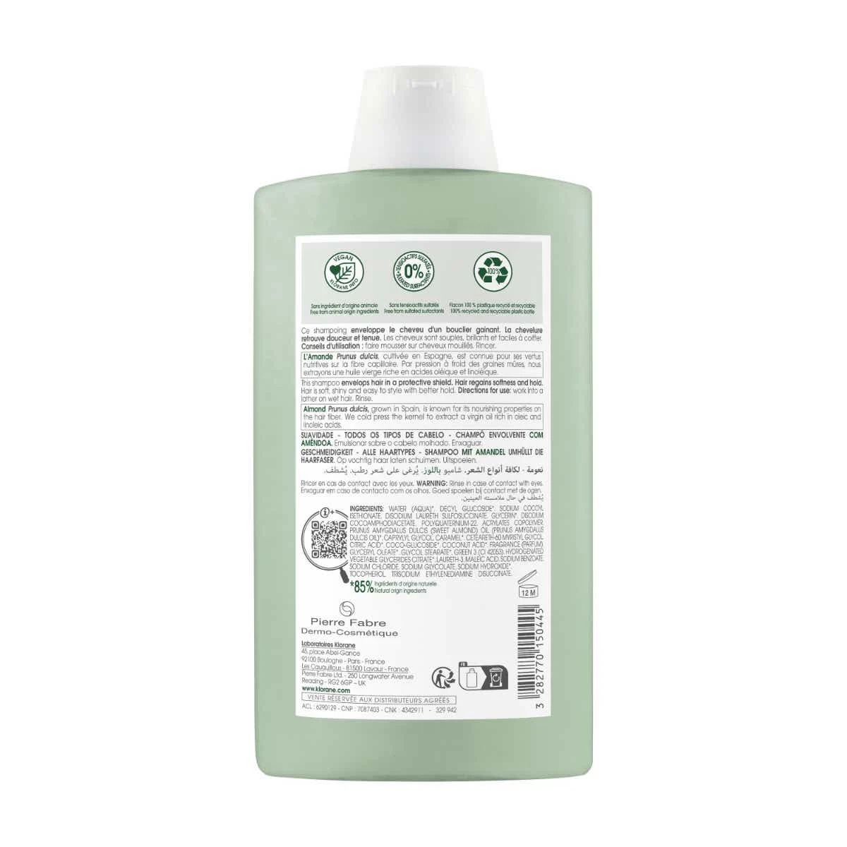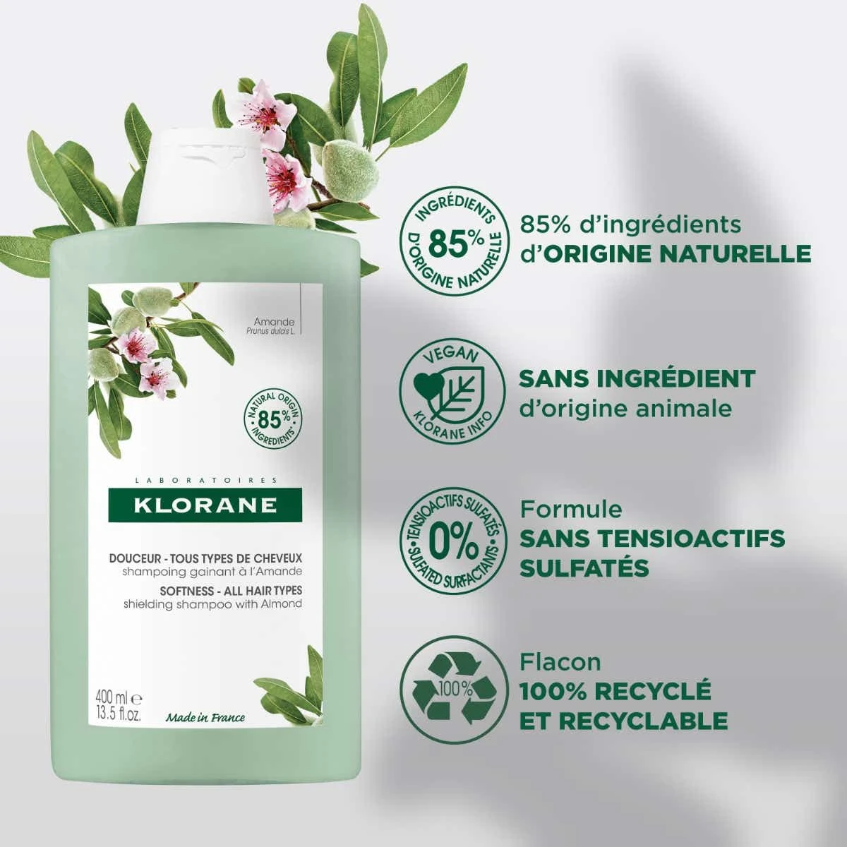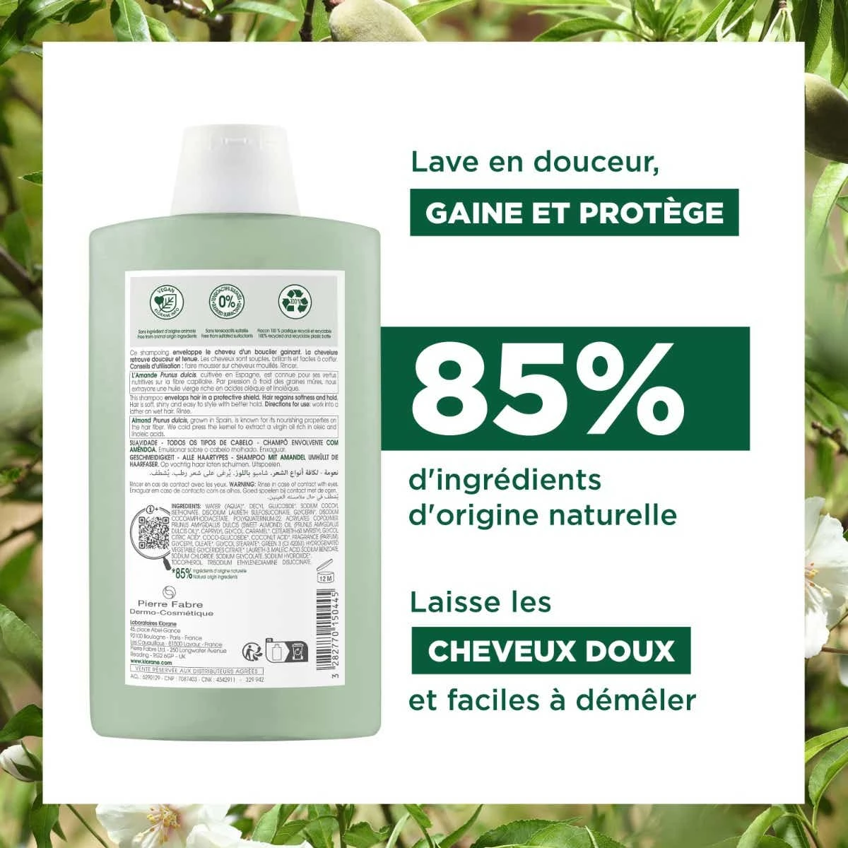 Klorane AMANDE – Shampooing Douceur Et Tenue – Tous Types De Cheveux, 400ml