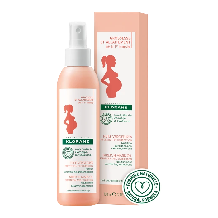 L’Huile Vergetures Klorane favorise la réduction des vergetures naissantes et nourrit la peau en profondeur. La peau est soumise à de fortes tensions durant la grossesse et l’allaitement. L’utilisation d’une huile de soin permet de bien préparer la peau à ces bouleversements et d’augmenter son élasticité. Cette huile de soin est conçue pour être utilisée dès le premier trimestre de grossesse. Son usage peut être poursuivi pendant toute la durée de l’allaitement. Des tests sous contrôle dermatologique ont prouvé sa totale innocuité. L’Huile Vergetures Klorane est très agréable à utiliser car elle est sans effet gras ni collant.