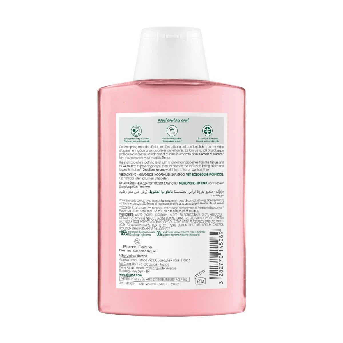 Klorane PIVOINE BIO – Shampoing Apaisant Et Anti-Irritant – Cheveux Sensibles, 200ml