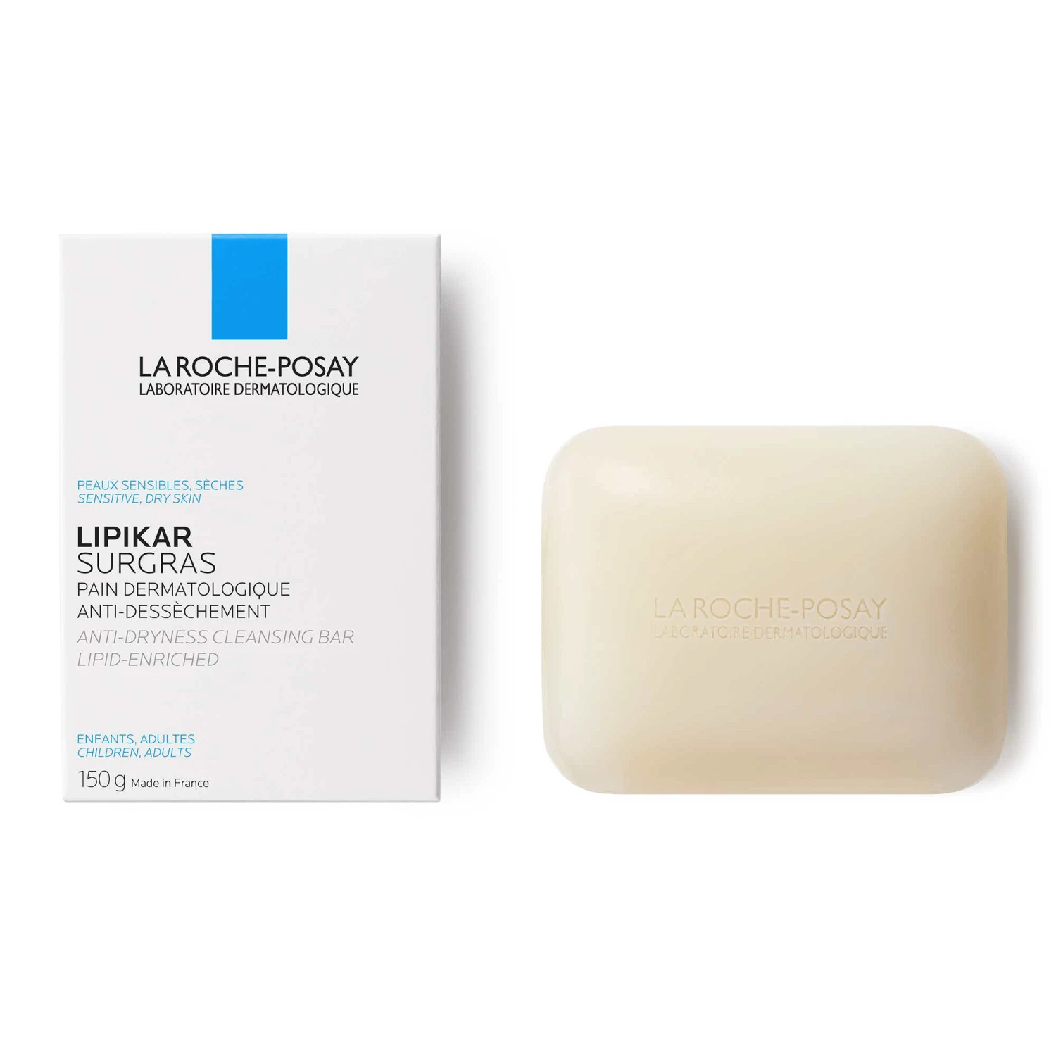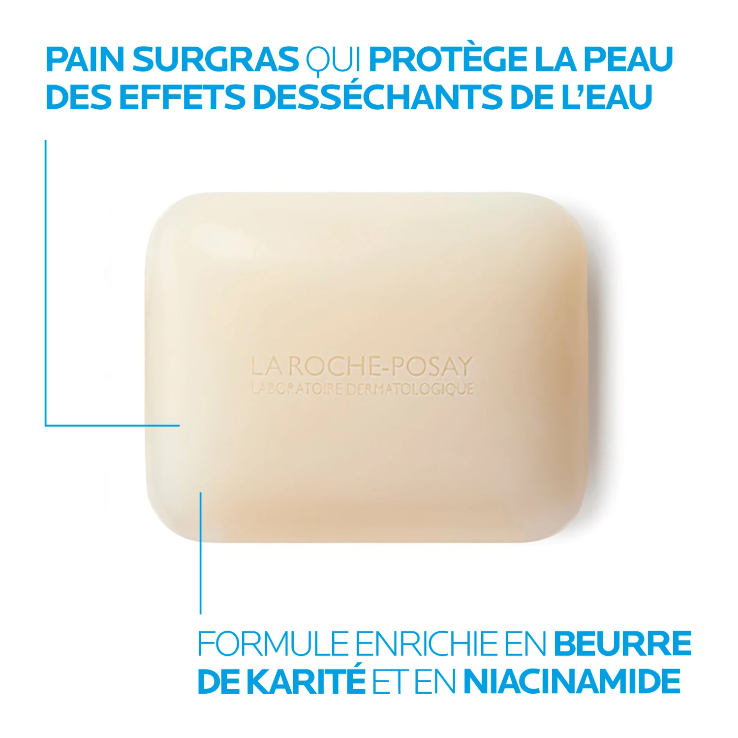 Le pain surgras Lipikar du laboratoire dermatologique La Roche-Posay est un savon dépourvu de savon destiné aux peaux sensibles et sèches ayant tendance à l’eczéma atopique. Sa formule spécifique utilise les principes actifs de la niacinamide et du beurre de karité. On y trouve aussi de l’acide palmitique et étidronique, du pentétate de pentasodium et de la glycérine. La niacinamide (ou vitamine B3) a des vertus lissantes et apaisantes.