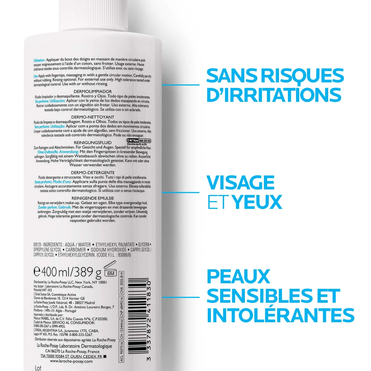 Le Fluide Nettoyant et Démaquillant Peaux Sensibles à Intolérantes de La Roche-Posay fait partie de la gamme Toleriane, un ensemble de soins hypoallergéniques conçus pour les peaux à tendance sèche ou atopique. Ce fluide offre un démaquillage des yeux et du visage en douceur en minimisant les risques de rougeurs et d’irritation. Sa texture onctueuse, semblable à un lait, est enrichie en glycérine pour hydrater les couches cutanées profondes de l’épiderme fragilisé.