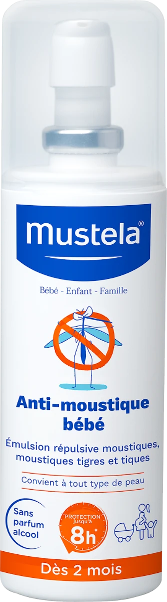 L’Emulsion Répulsive Moustiques de MUSTELA permet de protéger les bébés à partir de 2 mois, les enfants et les adultes. Elle assure une protection jusqu’à 8 heures contre les moustiques et les moustiques tigres. Cet anti-moustiques bébé protège aussi contre les tiques en zones tempérées pendant près de 7 heures. Au niveau de sa formulation, cette lotion anti-moustiques contient de l’IR3535 concentrée à 10%. Cette molécule approuvée pour son innocuité et son efficacité perturbe le système olfactif du moustique sans le tuer, permettant ainsi de le repousser. La lotion est sans parfum et sans alcool. Elle protège le visage et le corps. Privilégier une protection physique (vêtements, moustiquaire avant d’utiliser le produit biocide). Convient au nourrisson (dès 2 mois), au bébé, à l’enfant, à l’adulte et à la femme enceinte et allaitante. L’émulsion répulsive Mustela a une texture particulièrement légère, très simple à appliquer car elle ne colle absolument pas.