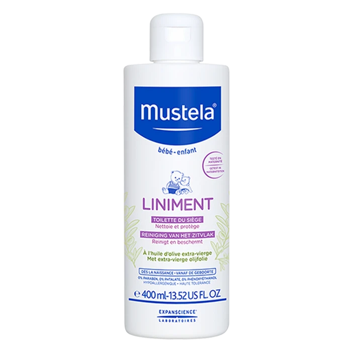 Le Liniment de la marque MUSTELA nettoie les fesses de bébé, tout en veillant à apporter à la peau sensible des bébés ce dont elle a besoin.