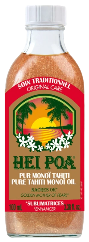 L’Huile de Monoï de Tahiti Pur Monoï de Hei Poa hydrate la peau et les cheveux.