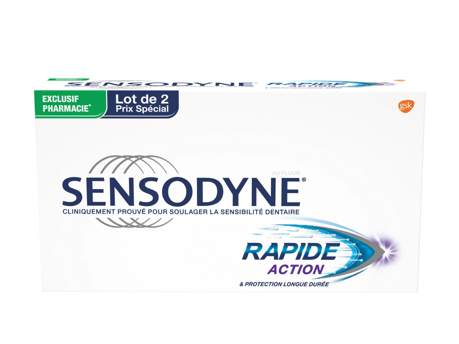 Le dentifrice Rapide Action mis au point par le laboratoire Sensodyne est recommandé aux personnes souffrant de sensibilité dentaire. Dès le 1er lavage, il soulage la sensibilité en moins d’une minute, et travaille à la réduire au fil des jours. Pour y parvenir, il forme une barrière minérale au niveau de la dentine qui n’est plus recouverte d’émail, afin de la protéger contre les stimuli extérieurs déclencheurs de douleurs, comme le froid. En plus de protéger activement les dents, ce dentifrice, riche en fluor, renforce l’émail dentaire, accentue son blanchiment et prévient l’apparition des taches à sa surface.