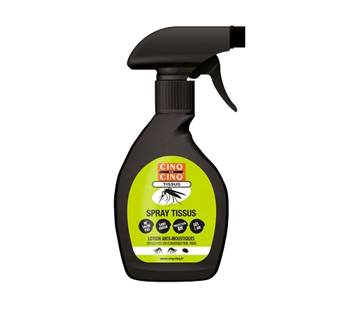 Le Spray Anti-Moustiques Tissus de CINQ SUR CINQ est un répulsif anti-moustiques spécialement formulée pour impregner les tissus. De manière continue, ce spray va protéger efficacement les vêtements contre les moustiques tigres et les tiques. Il va vous protéger pendant 8h contre les moustiques et 6h contre les tiques. Le spray peut être appliqué sur les vêtements des enfants à partir de 1 an. L’avantage de ce spray répulsif est qu’il ne tache pas et n’abime pas vos vêtements.