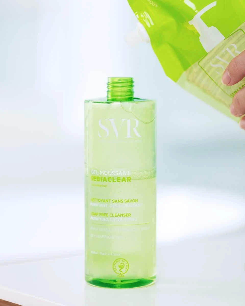 Sebiaclear Gel Moussant de SVR est un nettoyant anti-imperfections qui purifie et désincruste la peau en douceur.