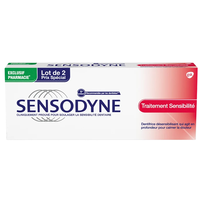 Le Dentifrice Traitement Sensibilité de SENSODYNE permet de soulager les dents dont la dentine à été mise à nu et ne protège les terminaisons nerveuses des douleurs liées au chaud et au froid.