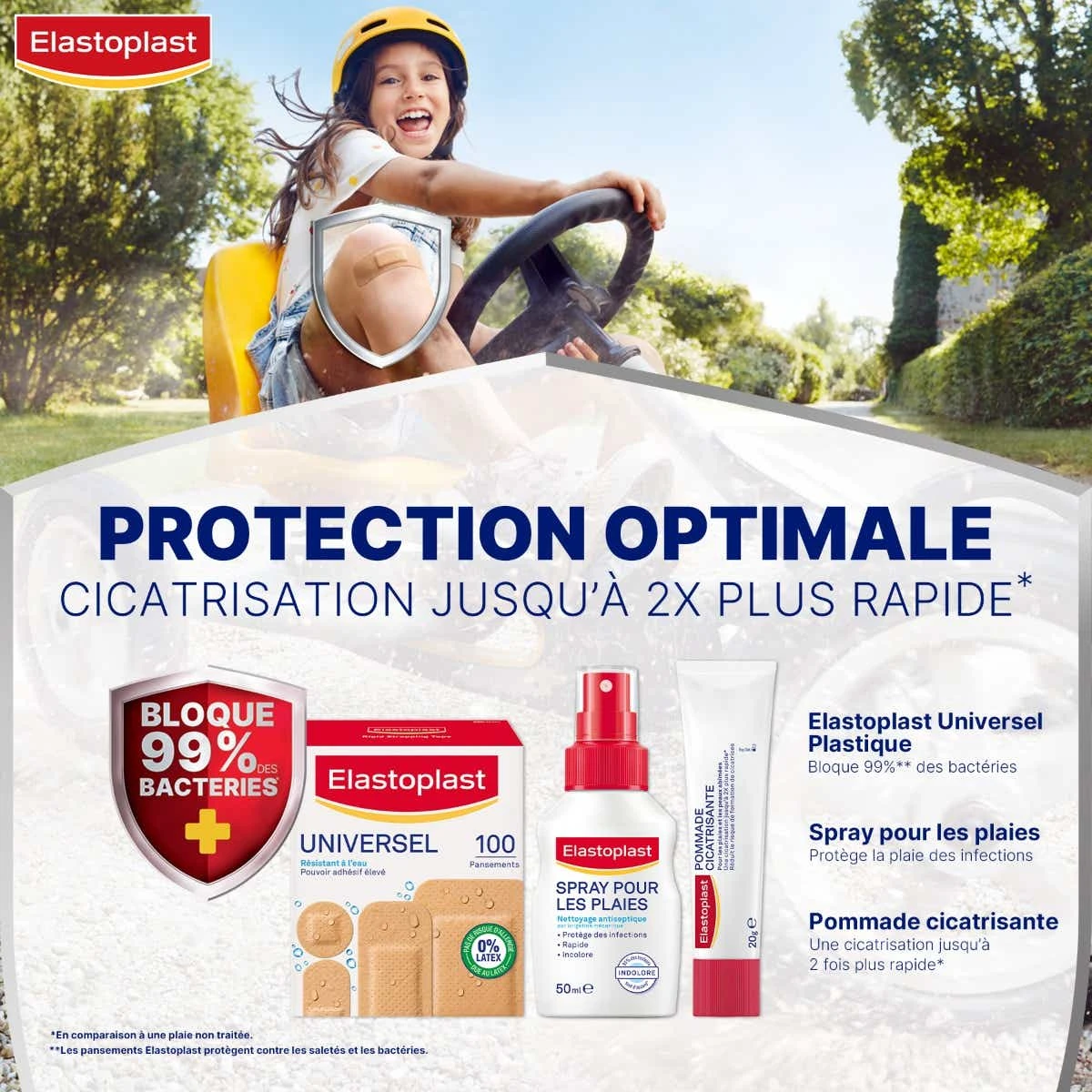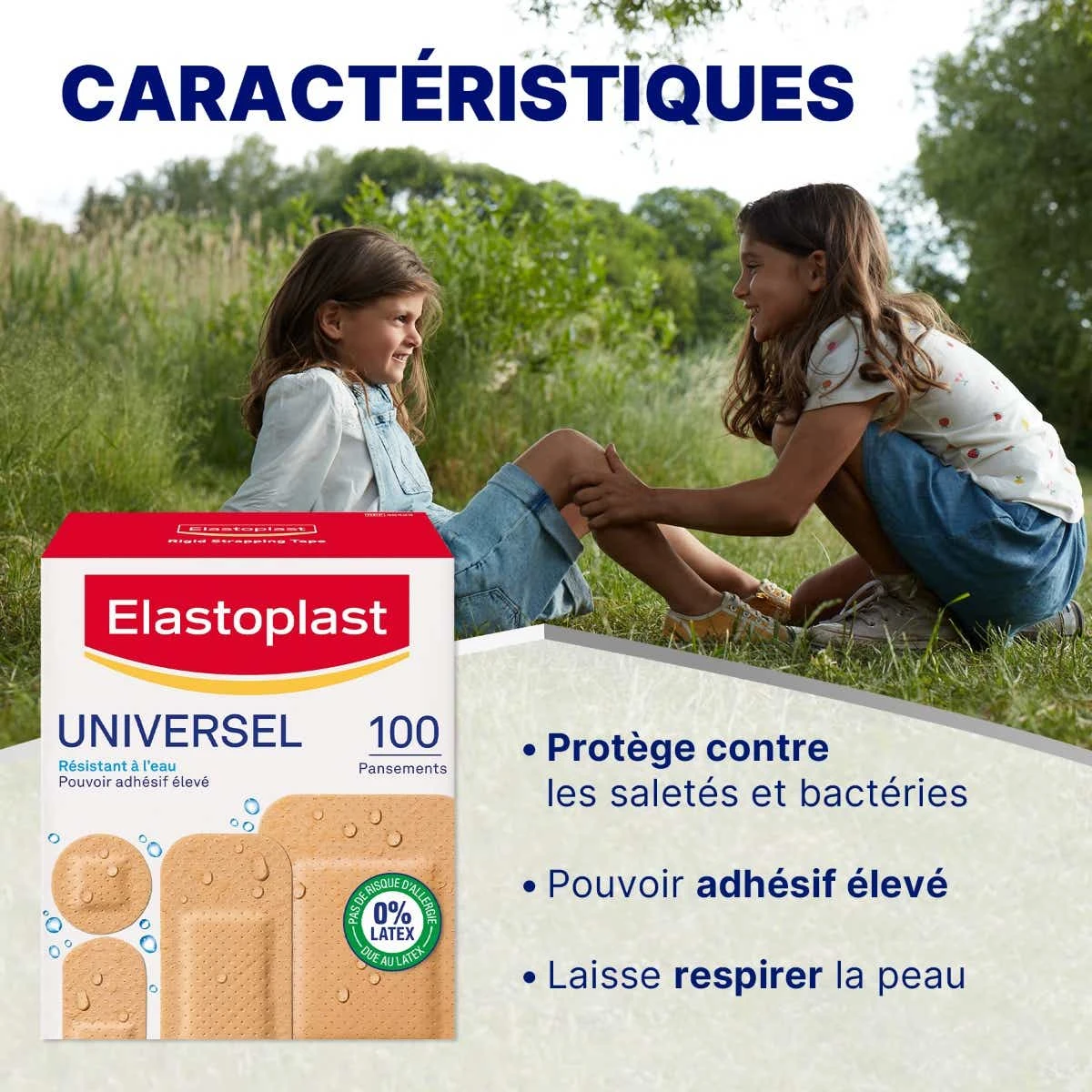 Les Pansements de la gamme Universel de Elastoplast possèdent différentes tailles pour s’adapter parfaitement à la blessure à couvrir. Ces pansements ont un fort pouvoir adhésif pour rester en place sur la peau, ils sont résistants à l’eau et à la saleté et laissent respirer la peau. De plus, ils sont garantis sans latex pour limiter le risque d’allergies.