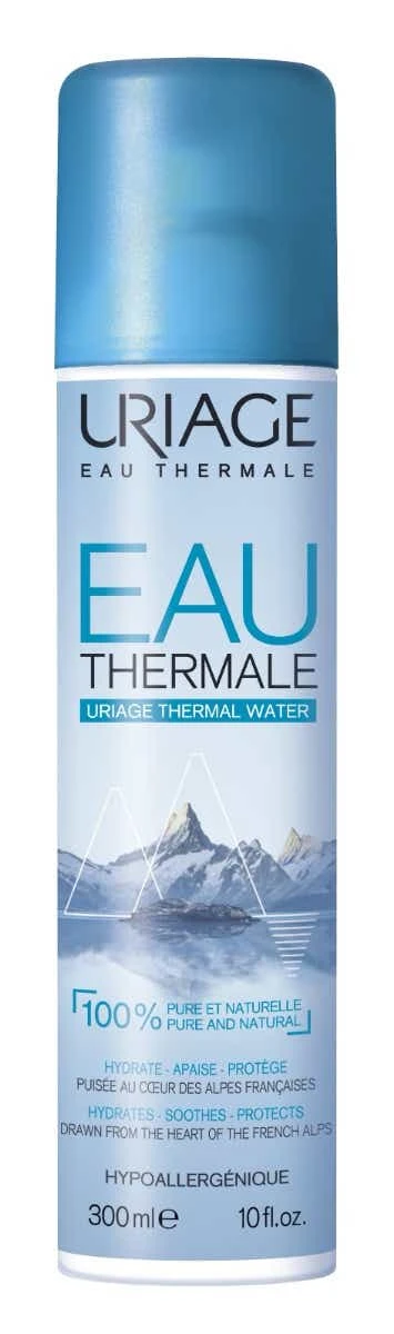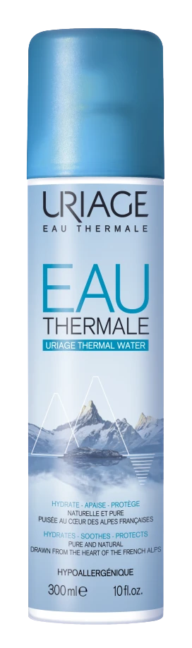 A quelques mètres de la source dans un centre de production ultra-moderne, le spray est conditionné à la source, en salle stérile, sans conservateur, sans parfum et conserve ainsi toute la richesse naturelle et la pureté de l’Eau. Le spray d’Eau Thermale de URIAGE, c’est l’eau de soin idéal pour une cure d’oligo-éléments et de sels minéraux au quotidien quel que soit le moment, quel que soit le besoin. – Une eau de soin qui soulage Rougeurs, irritations, érythèmes fessiers, petits traitements chirurgicaux, démangeaisons, coups de soleil, problème de rasage pour les hommes. – Une eau de soin qui protège et hydrate Au quotidien, après le démaquillage, profitez de son action anti-radicalaire. De plus, ses propriétés filmogènes et hydratantes laissent la peau particulièrement douce et veloutée. – Une Eau de soin qui rend la peau plus belle Son utilisation au quotidien permet à la peau de retrouver tout son éclat et sa vitalité. – Une eau de soin qui rafraîchit et fixe le maquillage En voyage, après le sport, au moment de sortir… l’Eau Thermale d’Uriage procure du bien être au quotidien.