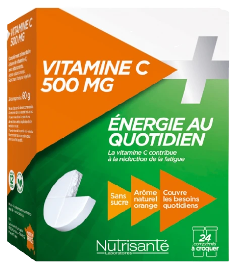Les comprimés Vitamine C à Croquer 500mg de NUTRISANTE est un complément alimentaire à base de vitamine C.
